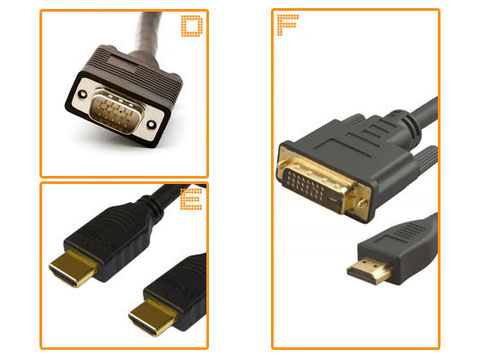 Falls Sie keinen HDMI-Anschluss haben, aber Ihr Fernseher einen VGA-Eingang besitzt (meist blau), nehmen Sie ein VGA-Kabel (D).